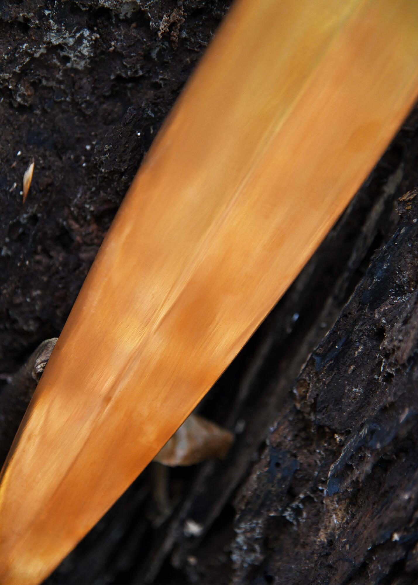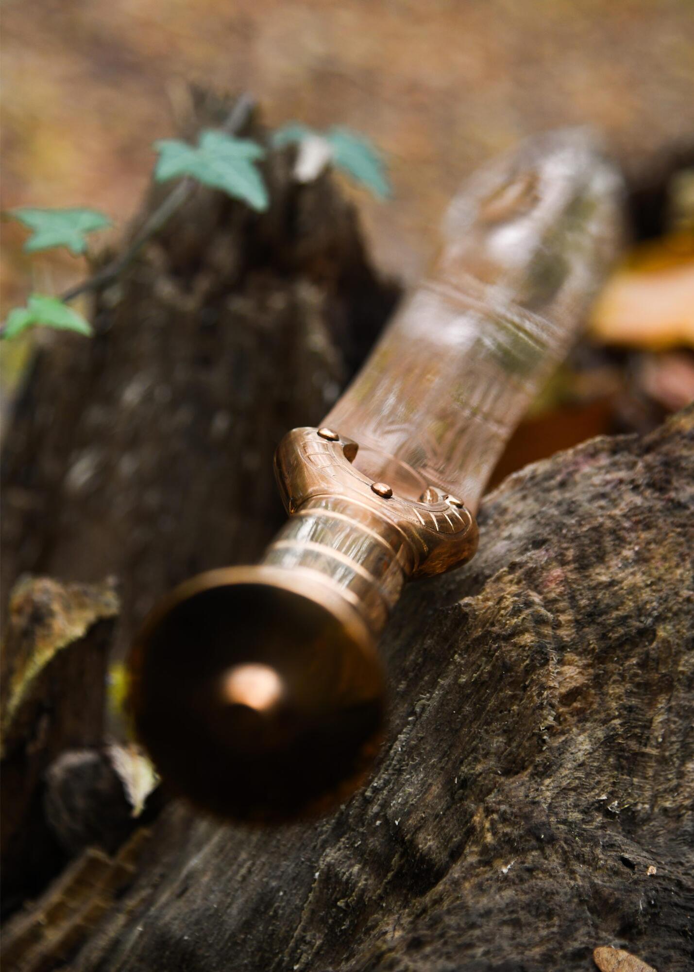 Dette sværd er fremstillet med stor respekt for de historiske detaljer. Både klinge og greb er støbt i massivt bronze og nittet sammen præcis som de originale fund. Den smukt graverede klinge understreger sværdets håndværksmæssige kvalitet og giver det et eksklusivt, historisk udtryk.