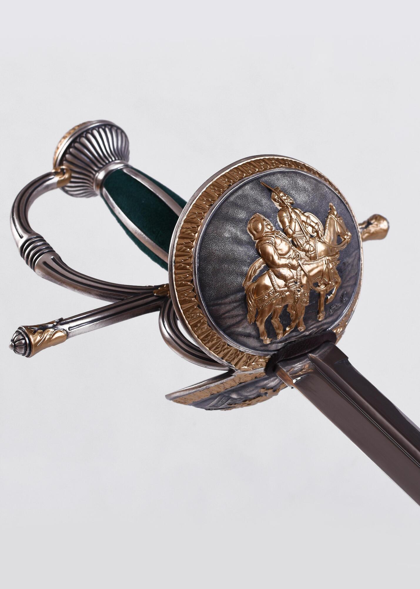 Dette sværd indfanger den klassiske ridderånd og den romantiske idealisme, som Don Quijote symboliserer. Designet afspejler den spanske riddertradition og fremstår elegant og dekorativt – et sværd med både historie og fortælling.