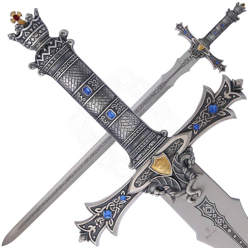 Drømmer du om at bringe et strejf af ridderromantik og britisk mytologi ind i dit hjem? Dette imponerende Kong Arthur-sværd er en overdådig pyntegenstand, skabt til samlere og historieelskere, der ønsker et ægte blikfang på væggen eller i montren.