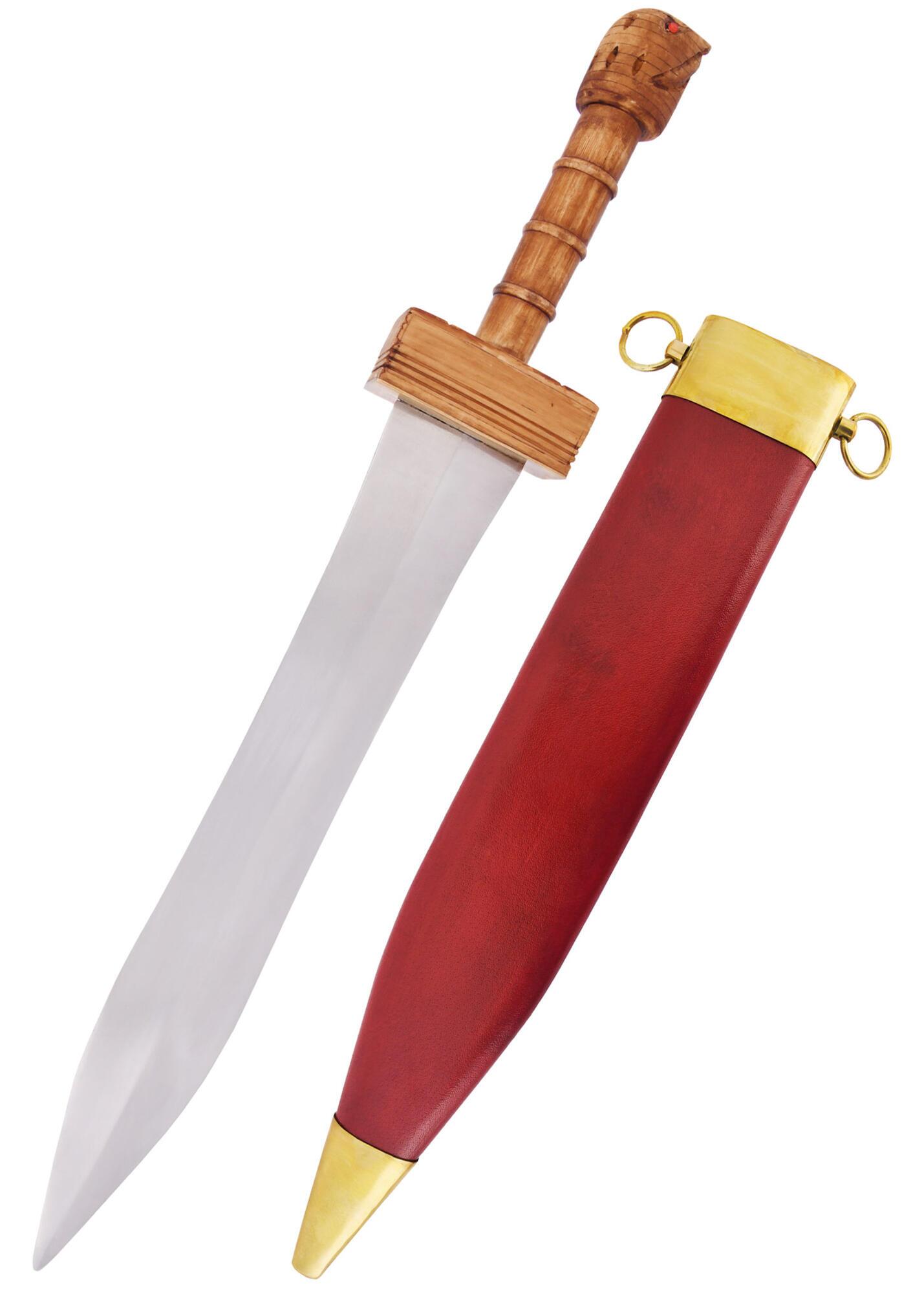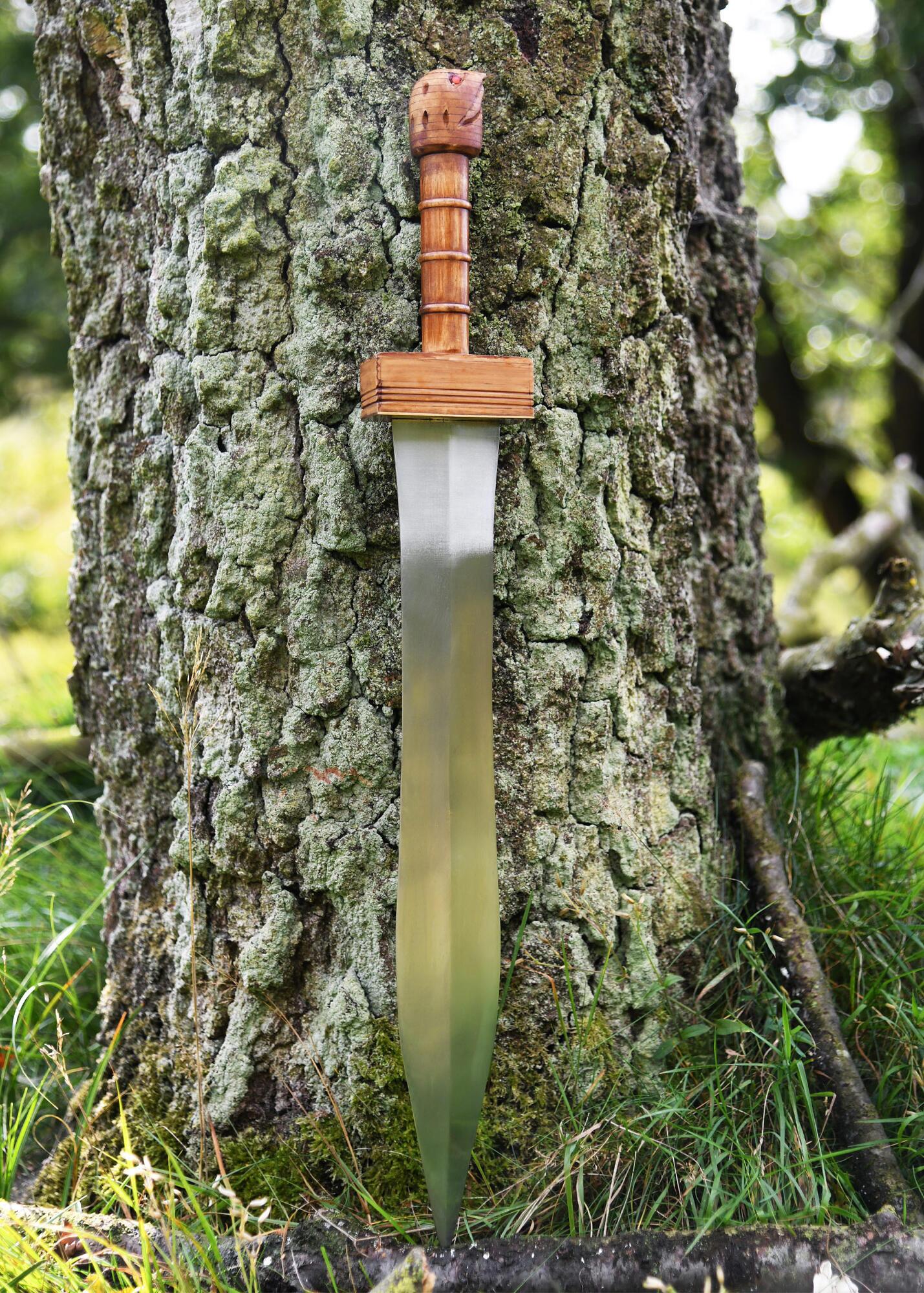 Dette parazonium er en stemningsfuld og detaljeret replika med den typiske tilspidsede, løvformede klinge, der kendetegner denne våbentype.