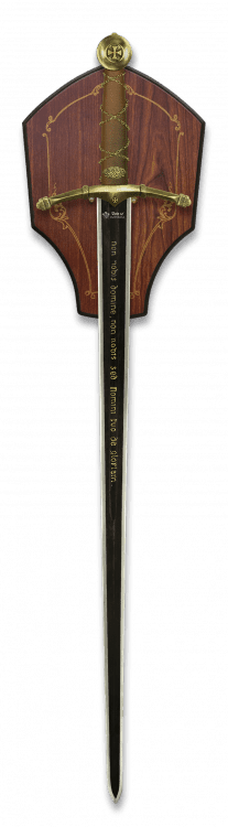 Håndtaget har en længde på 24,5 cm og er udført i zamak, som giver et klassisk og robust greb. Den samlede længde på 113 cm gør sværdet stort og imponerende i enhver udstilling.