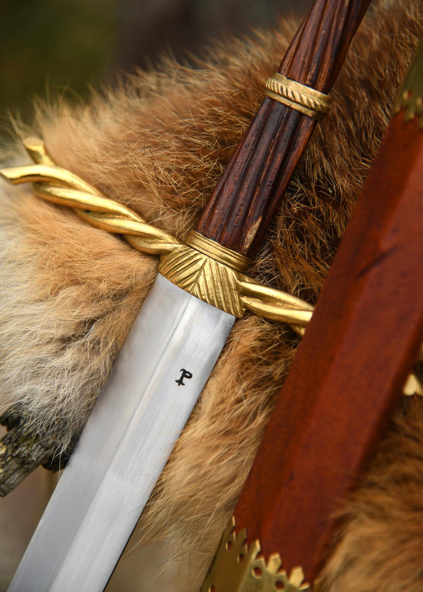 Sværdet leveres med en flot træskede beklædt med ægte læder og udstyret med messingmundblik og chape med gotiske dekorationer.