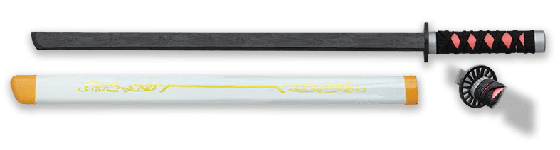 Den medfølgende hvide ABS skede skaber en tydelig kontrast til den mørke klinge, mens den sorte ABS tsuba fuldender designet.