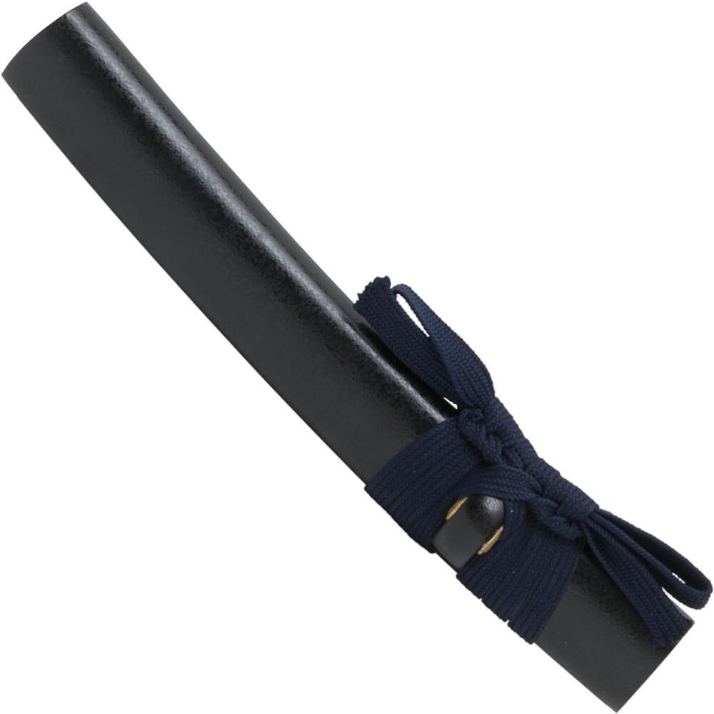 Klingen er håndsmedet i 1045 high carbon stål i Shinogi-Zukuri stil uden Bo-Hi, hvilket giver et rent og kraftfuldt udtryk. Den er slebet skarp og har en tydelig hamon-linje, som understreger det autentiske look. Håndtaget (tsuka) er fremstillet i træ, beklædt med ægte rokkehud og omviklet med blå bomuld i klassisk Hineri Maki stil. Skeden (saya) er sortlakeret træ i Kuroro-stil.