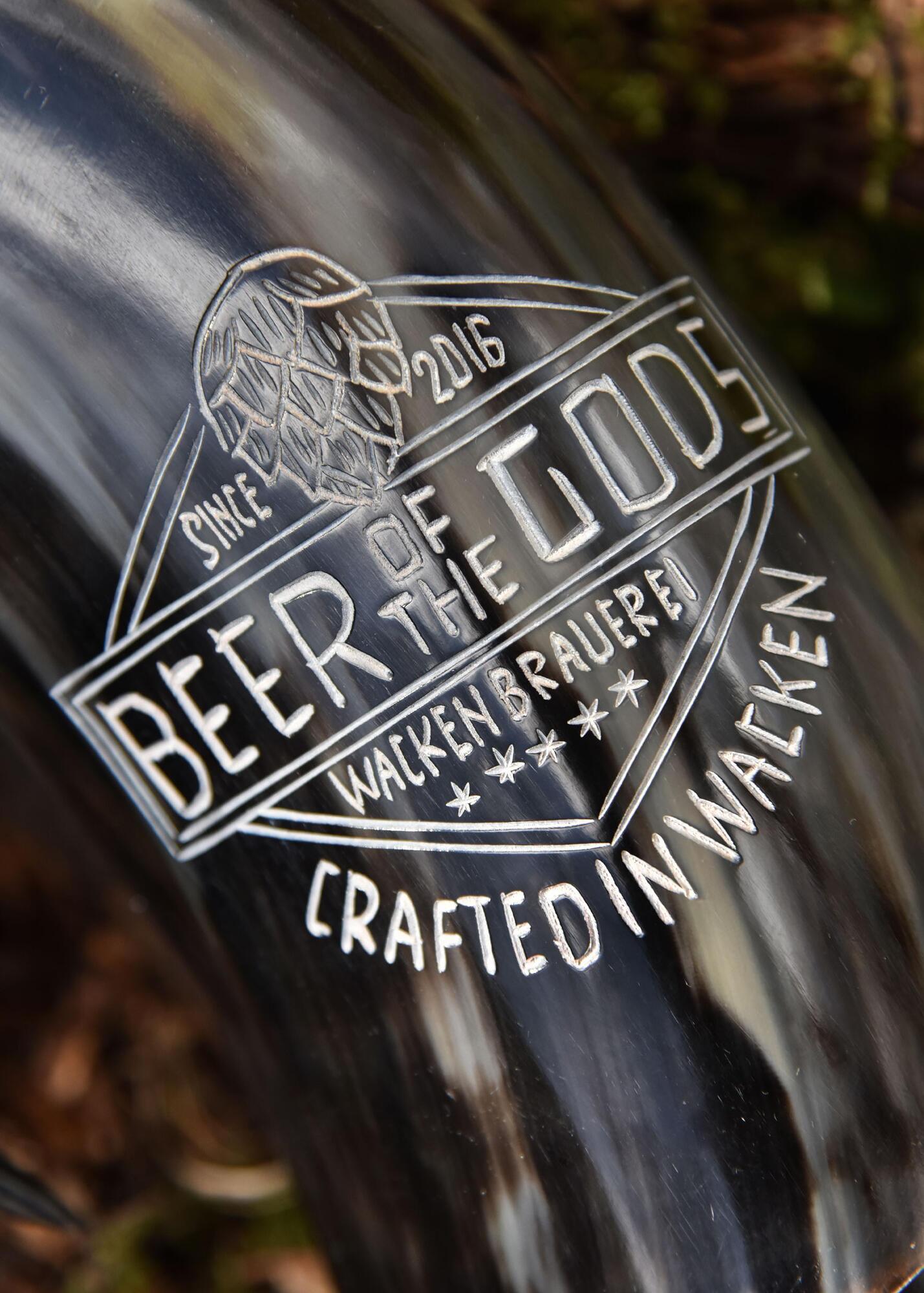 Hvert krus er fremstillet i ægte horn, hvilket giver et naturligt og karakterfuldt udseende. Graveringen af bryggeriets logo understreger forbindelsen til Wacken og den særlige ølkultur, der er vokset frem omkring stedet.