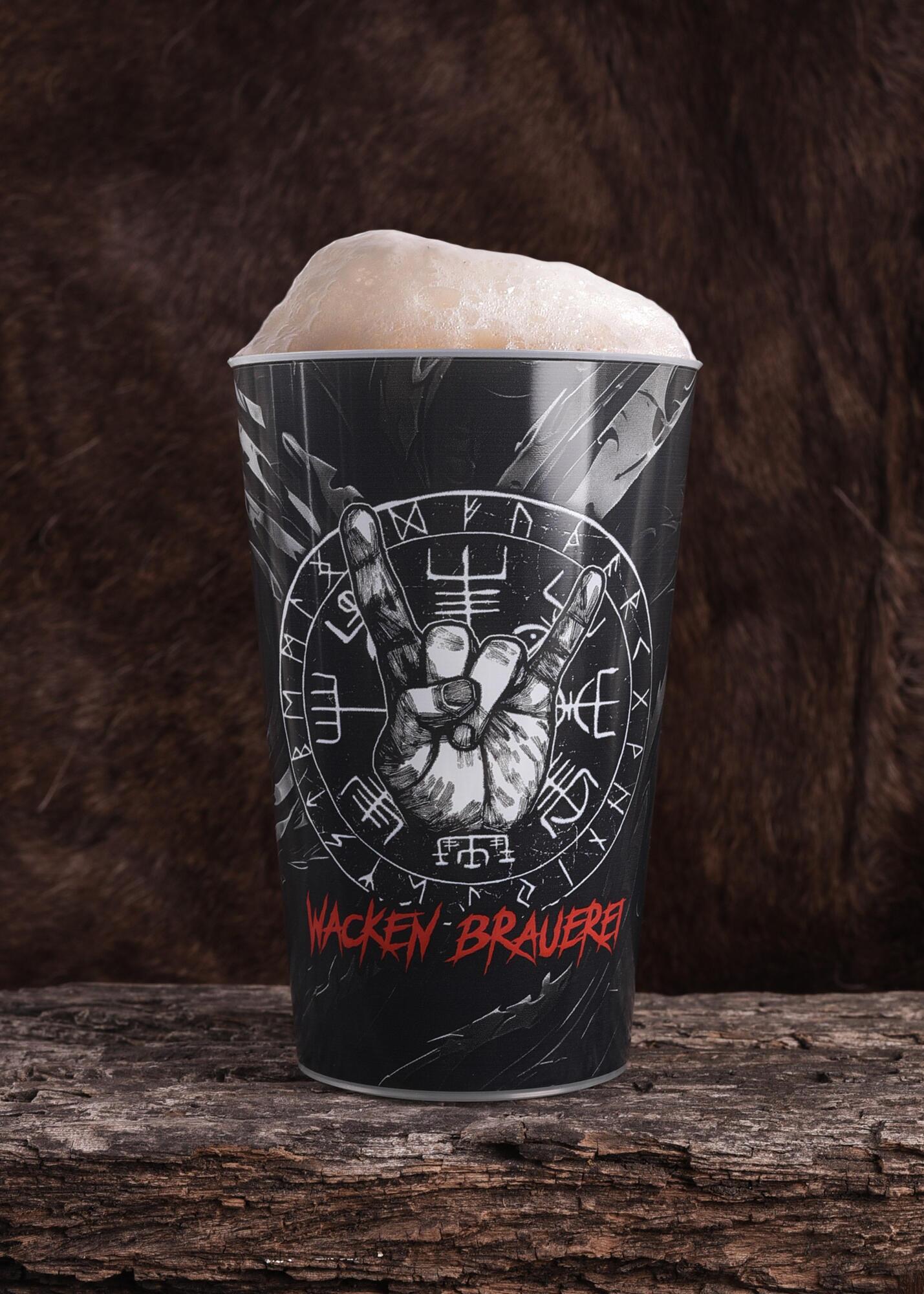 Kruset er dekoreret med det islandske Vegvisir-symbol samt Manu Cornuta – også kendt som “metalhornene”. Sammen danner de en symbolsk forbindelse mellem den nordiske mytologi og den energiske festivalstemning fra Wacken. Vegvisir er et kendt symbol, som ofte tolkes som en vejviser og forbindes med de ni verdener i nordisk mytologi.
