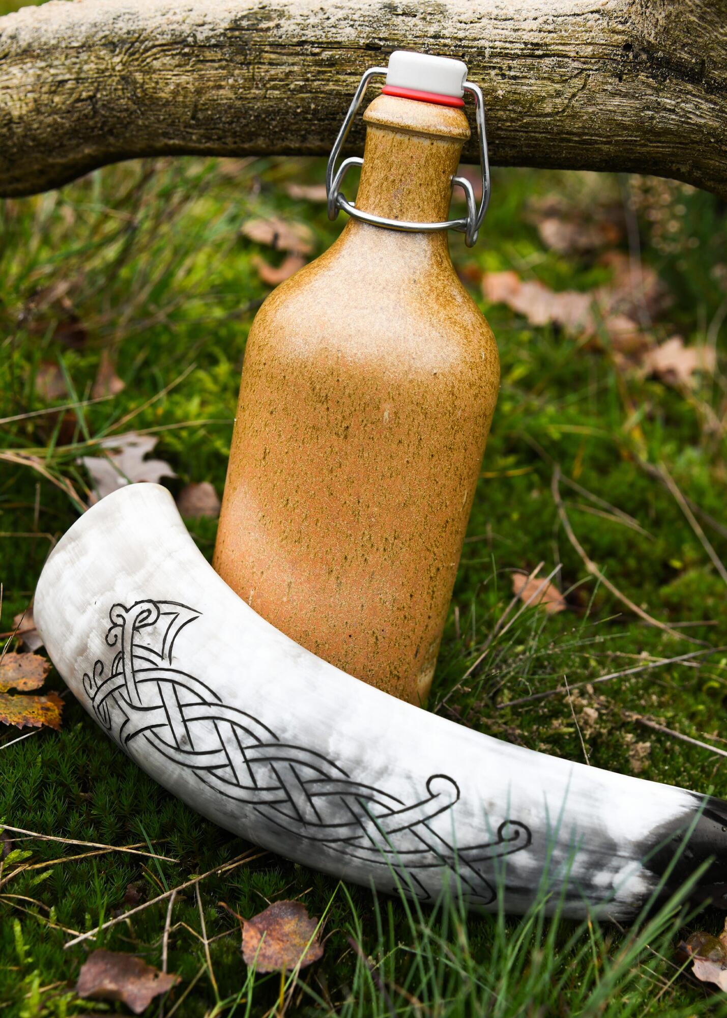 Indersiden er forseglet med en fødevaregodkendt lak, så hornet kan bruges til drikkevarer som eksempelvis øl eller mjød.
