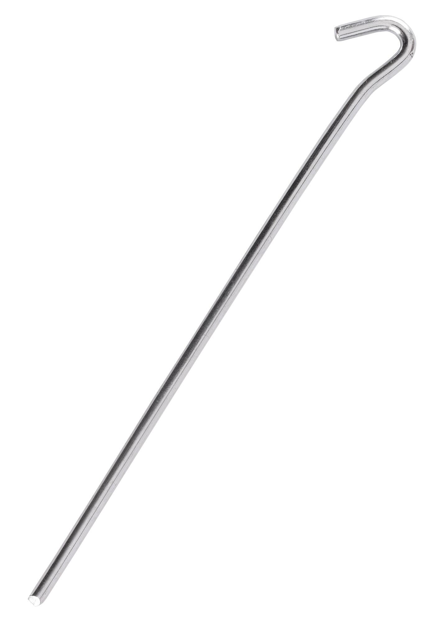Pløkken er galvaniseret med zink, hvilket hjælper med at beskytte stålet mod rust og slid ved brug udendørs. Den solide konstruktion gør den velegnet til både camping, historiske telte, markedsboder eller andre friluftsaktiviteter.