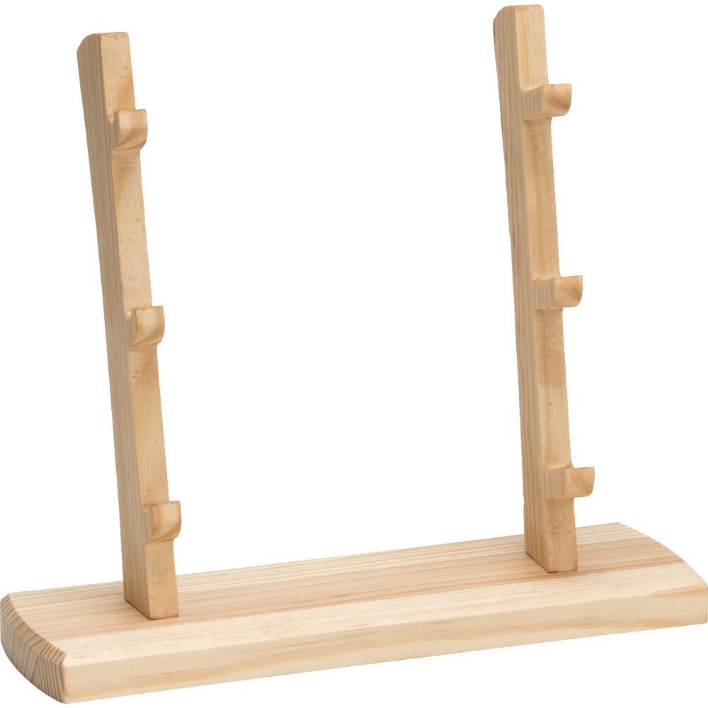 Elegant og enkel træstander designet til præsentation af op til 3 foldeknive. Standeren giver en flot og overskuelig fremvisning og egner sig perfekt til både samlere, butikker og udstillingsbrug.