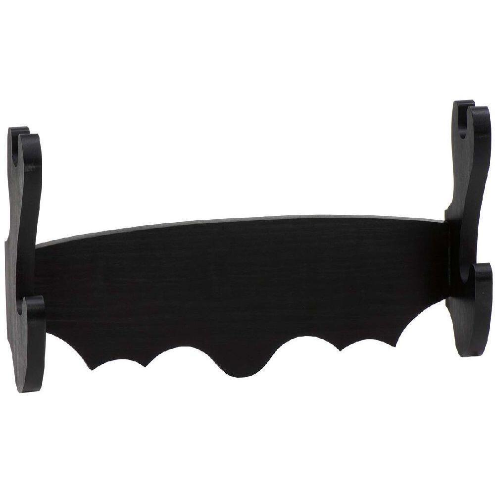 Dekorativt vægophæng fremstillet i bejdset træ, designet til sikker og stilfuld præsentation af to samuraisværd. Det klassiske trælook giver et eksklusivt og tidløst udtryk, som passer perfekt til både hjemmet, butikken eller udstillingslokalet.