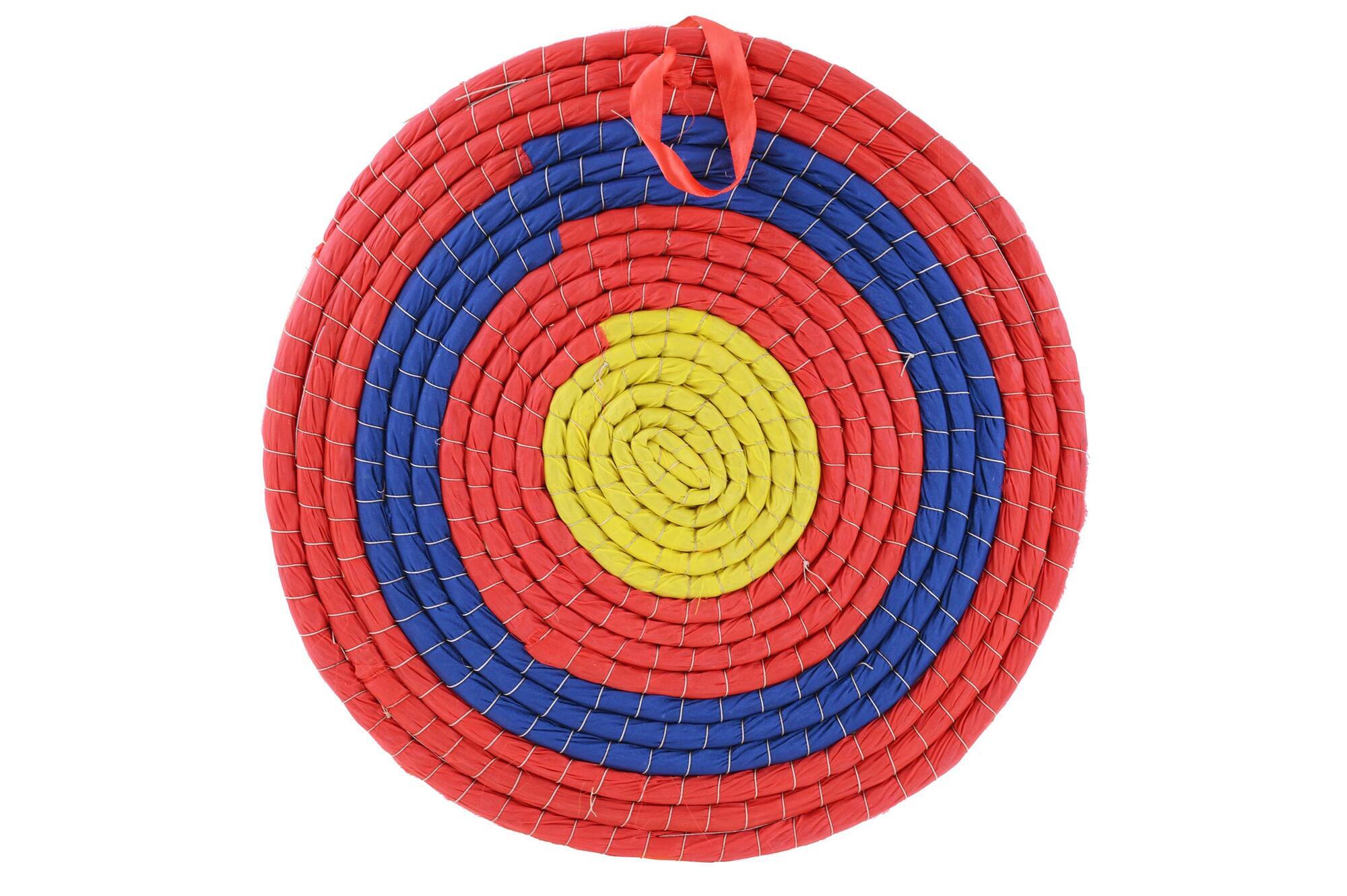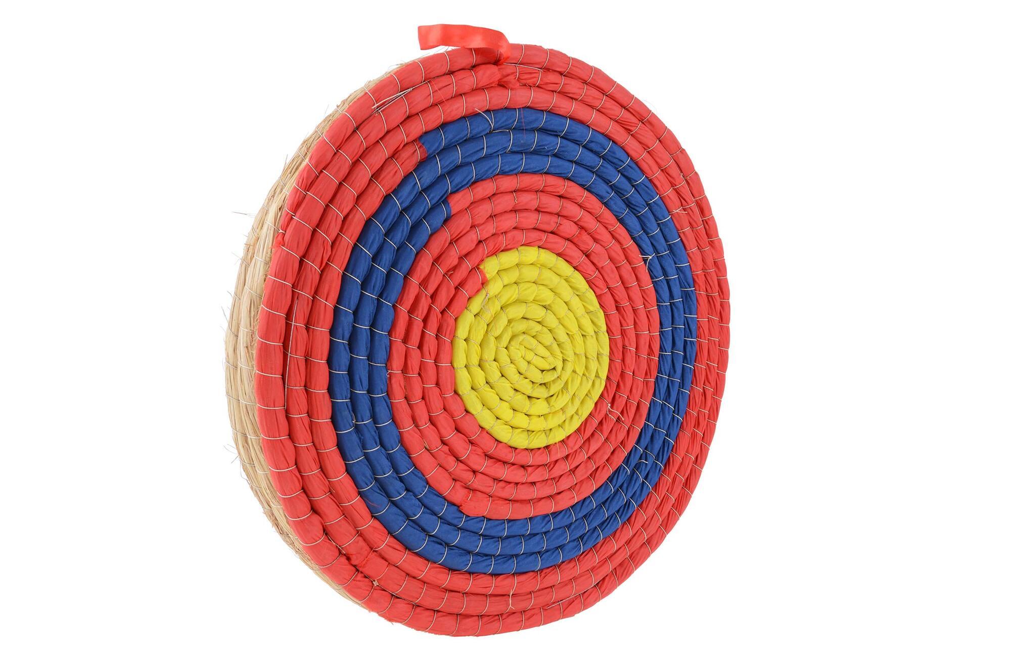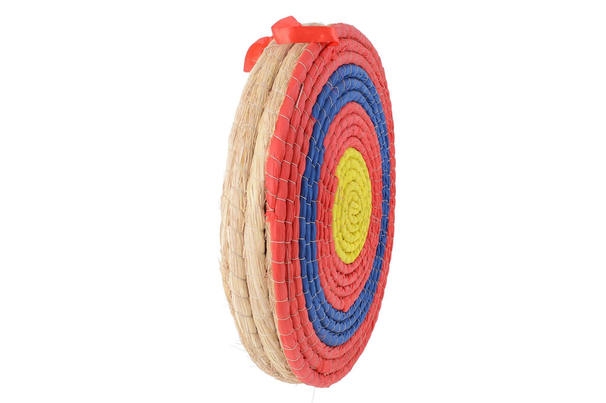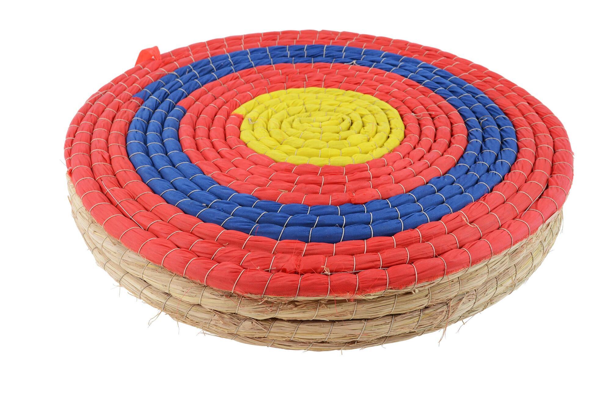 En traditionel bueskydningsskive fremstillet af håndvævet hampestrå, som giver en stærk og holdbar konstruktion. Det klassiske design gør den velegnet til både træning og hobbybrug.