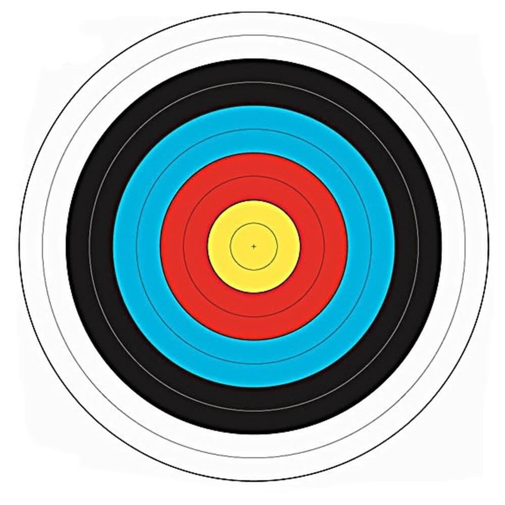 Klassisk skydeskive (target face) med en diameter på 40 cm, velegnet til bueskydning med både recurve- og compoundbuer. Perfekt til træning i haven eller på skydebanen.